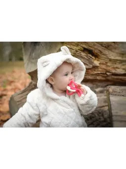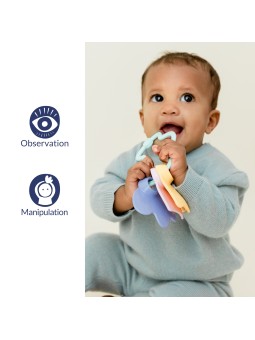 Stymulująca grzechotka do manipulowania, gryzienia i potrząsania. Doskonała do pobudzania zmysłu dotyku u niemowląt. Waga i kształt zaprojektowane z myślą o małych dzieciach