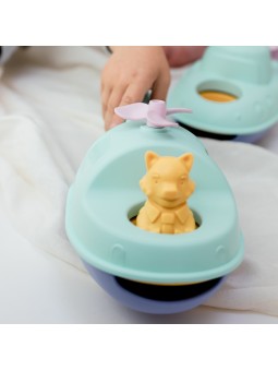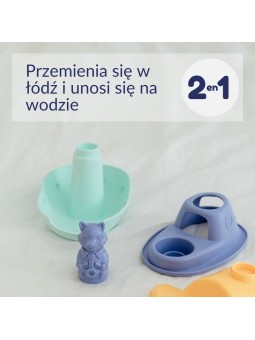 Helikopter z trzema kadłubami, które można ułożyć na sobie, przekształcając go w łódź. W zestawie znajduje się figurka liska.