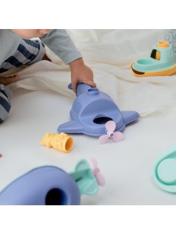 Wodnosamolot (hydroplan) z trzema kadłubami, które można ułożyć w stos, aby przekształcić go w łódź. Zestaw zawiera figurkę liska. Pasuje do innych pojazdów.