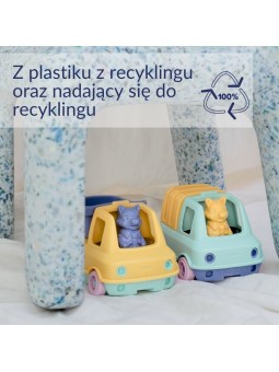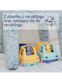 Śmieciarka z odchylaną przyczepą. Zawiera figurkę liska. Kompatybilna z innymi samochodzikami, które połączone ze sobą tworzą mały pociąg.