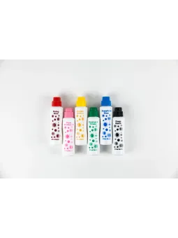 Zmywalna farba w płynie w dużej, dopasowanej do rączek dziecka butelce, zakończonej dużą, miękką gąbeczką, która nie wysycha i zawsze pozostawia na kartce idealną kropkę. Butelka zawiera nietoksyczną, zmywalną farbę, szybko wysychającą, w żywych kolorach, która nie rozlewa się, ani nie...