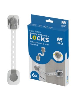 SIPO zestaw 6 sztuk zabezpieczeń do szaf, szuflad z możliwością regulacji długości i system zamykania na zatrzask który zapewni szybki dostęp dorosłym ale zabezpieczy przed otwarciem przez małe dzieci. Szuflady są często używane do przechowywania przedmiotów, które mogą stanowić zagrożenie dla...