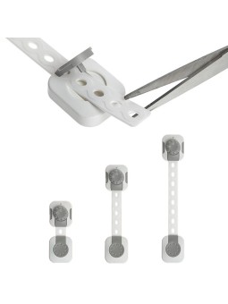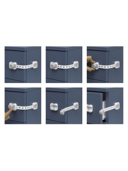 SIPO zestaw 6 sztuk regulowanych zabezpieczeń do szaf, szuflad z łatwą funkcją blokady która zapewni szybki dostęp dorosłym ale zabezpieczy przed otwarciem przez małe dzieci. Zabezpieczenia mają dodatkową możliwość regulacji długości, dzięki czemu w prosty sposób dopasujesz długość...