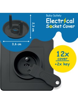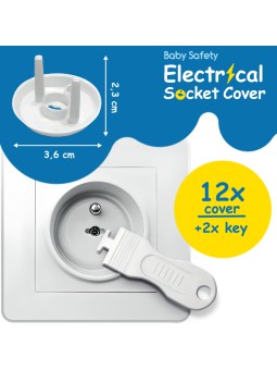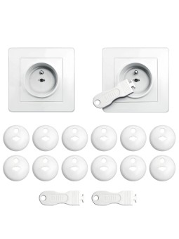 Zestaw zabezpieczeń gniazd elektrycznych 12+2. W skład zestawu wchodzą, 12 sztuk zaślepek gniazd elektrycznych oraz 2 sztuki kluczy służących do odbezpieczania zabezpieczeń przez dorosłych. Zaślepki kontaktów elektrycznych zgodne ze standardowymi gniazdami elektrycznymi z uziemieniem....