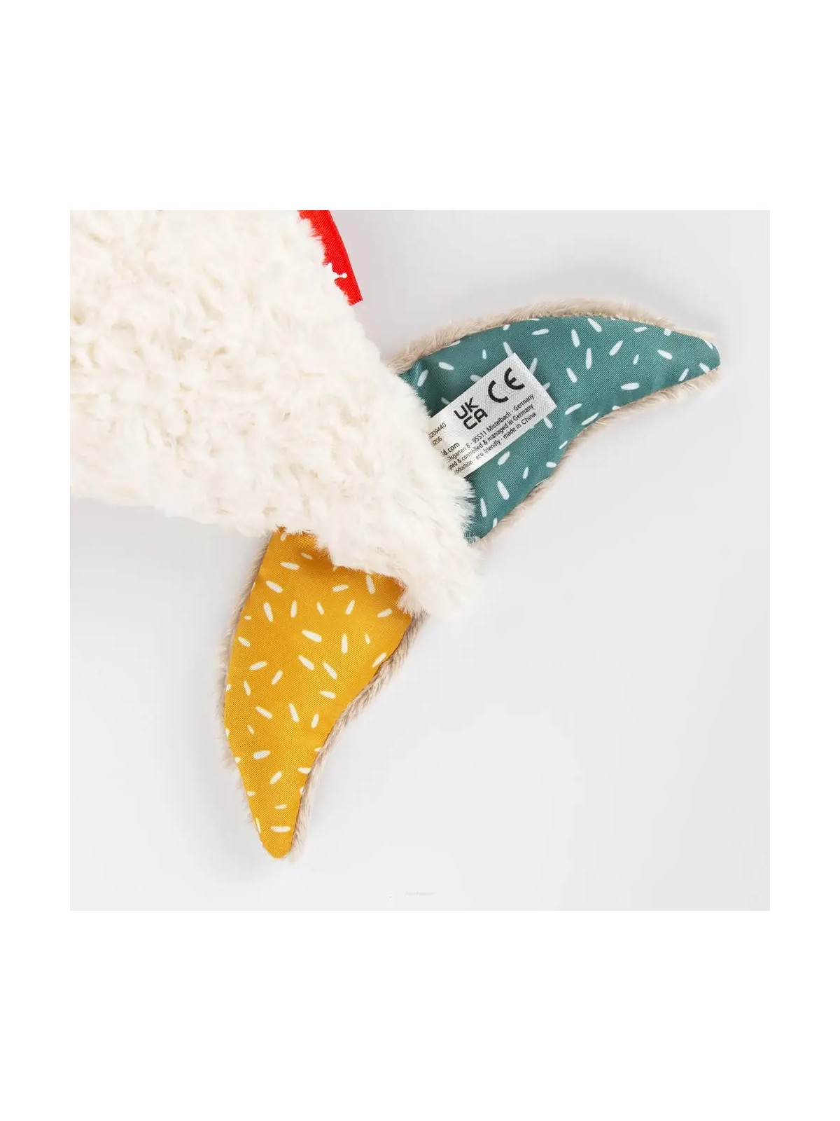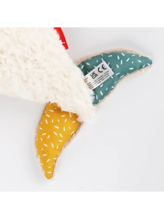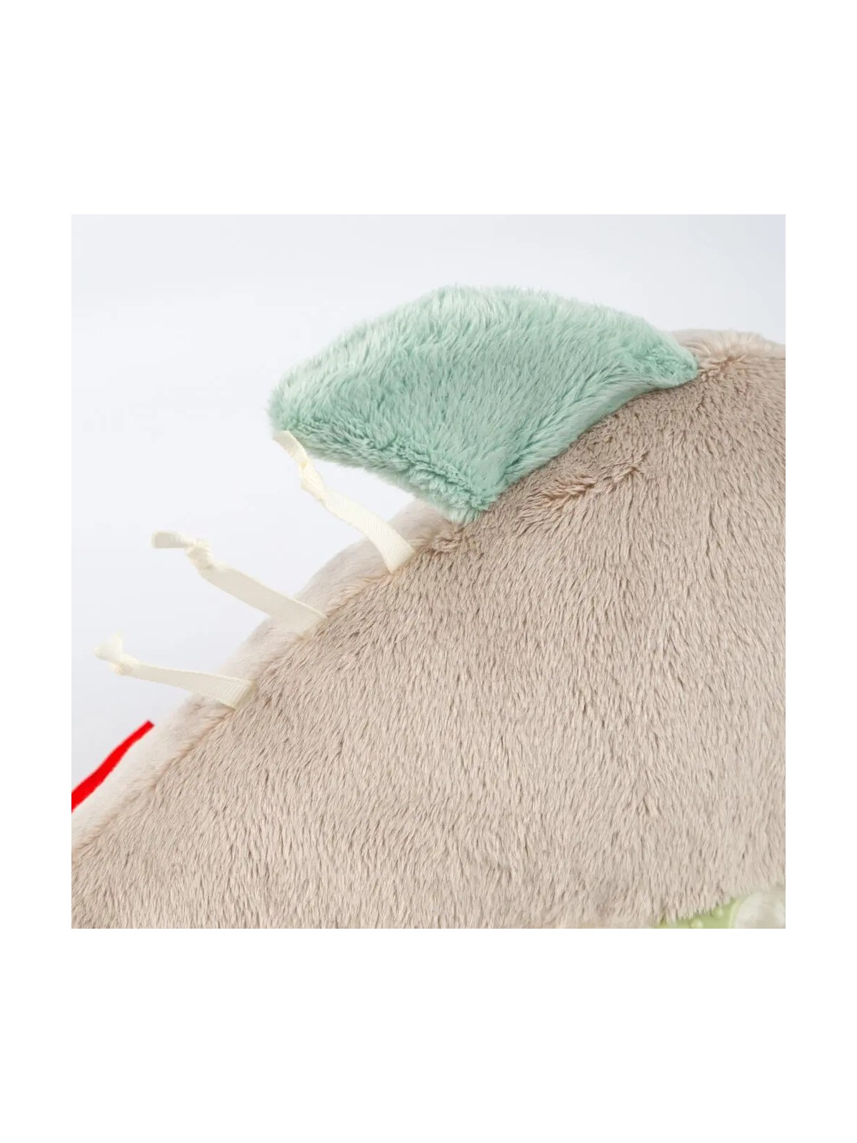 Wszyta szeleszcząca folia, grzechotka, piszczałka oraz gryzaczek angażują zmysły maluszka, zapewniają różnorodne bodźce i wzbudzają jego ciekawość.