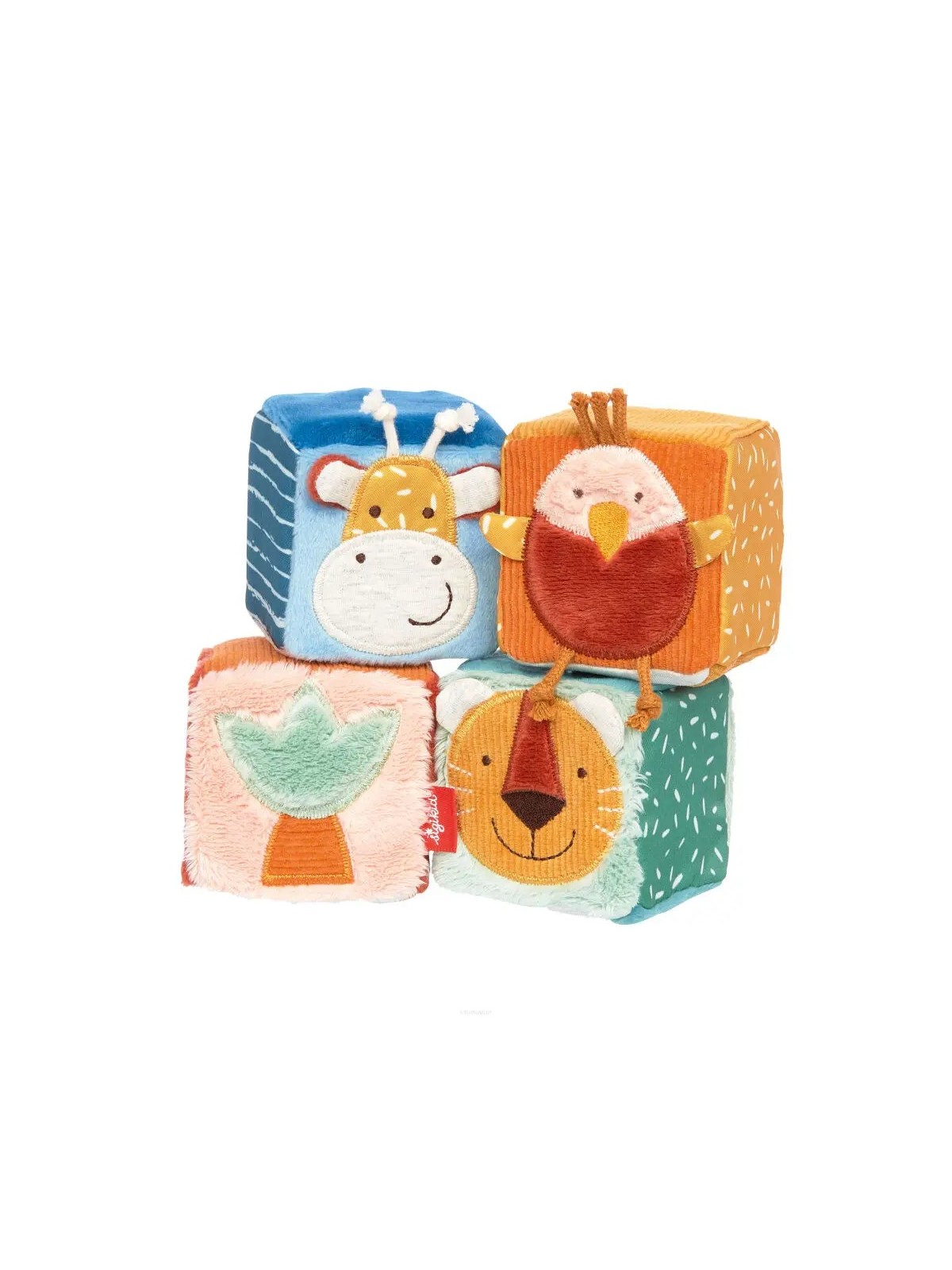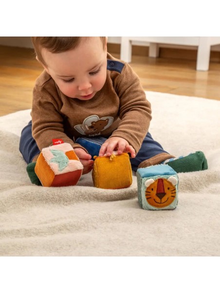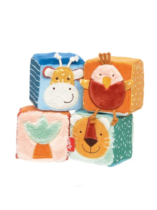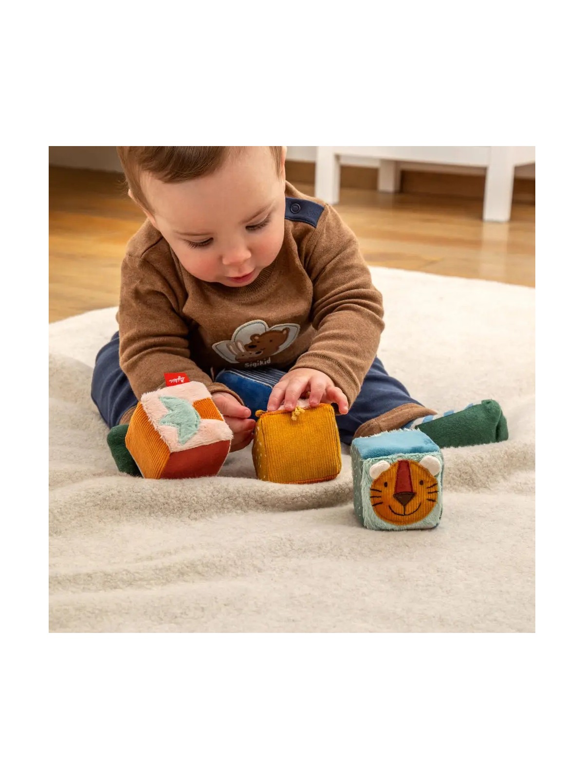 Kompaktowa mięciutka kostka to ekscytująca i pełna nowych możliwości zabawka. Różnorodne tkaniny i przyjazne aplikacje z wizerunkami zwierząt oferują maluchom nowe wrażenia wizualne i dotykowe. Kostka kryje również akustyczną niespodziankę: piszczałka, dzwonek i szeleszcząca folia ćwiczą słuch...