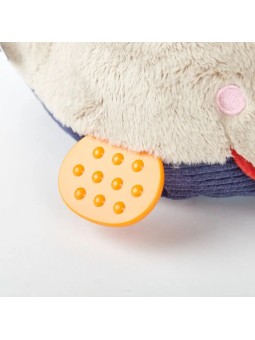 Słodka miękką bawełnianą przytulanką typu pocieszyciel z grzechotką i organicznym gryzakiem wykonanym z naturalnego kauczuku Hevea. Produkt ręcznie malowany farbami roślinnymi. Wymiary: 28 x 22 x 5 cm Wiek: 0+ Produkt ANTY ALERGICZNY