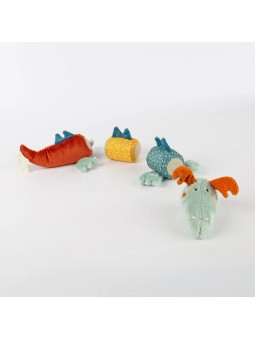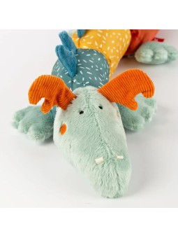 Czteroczęściowy mięciutki Smok to ekscytująca i pełna nowych możliwości zabawka. Różnorodne tkaniny i łączenie poszczególnych elementów na rzepy oferują maluchom nowe wrażenia wizualne i dotykowe. Piszczałka, grzechotka i szeleszcząca folia ćwiczą słuch dziecka i nagradzają próby chwytania....
