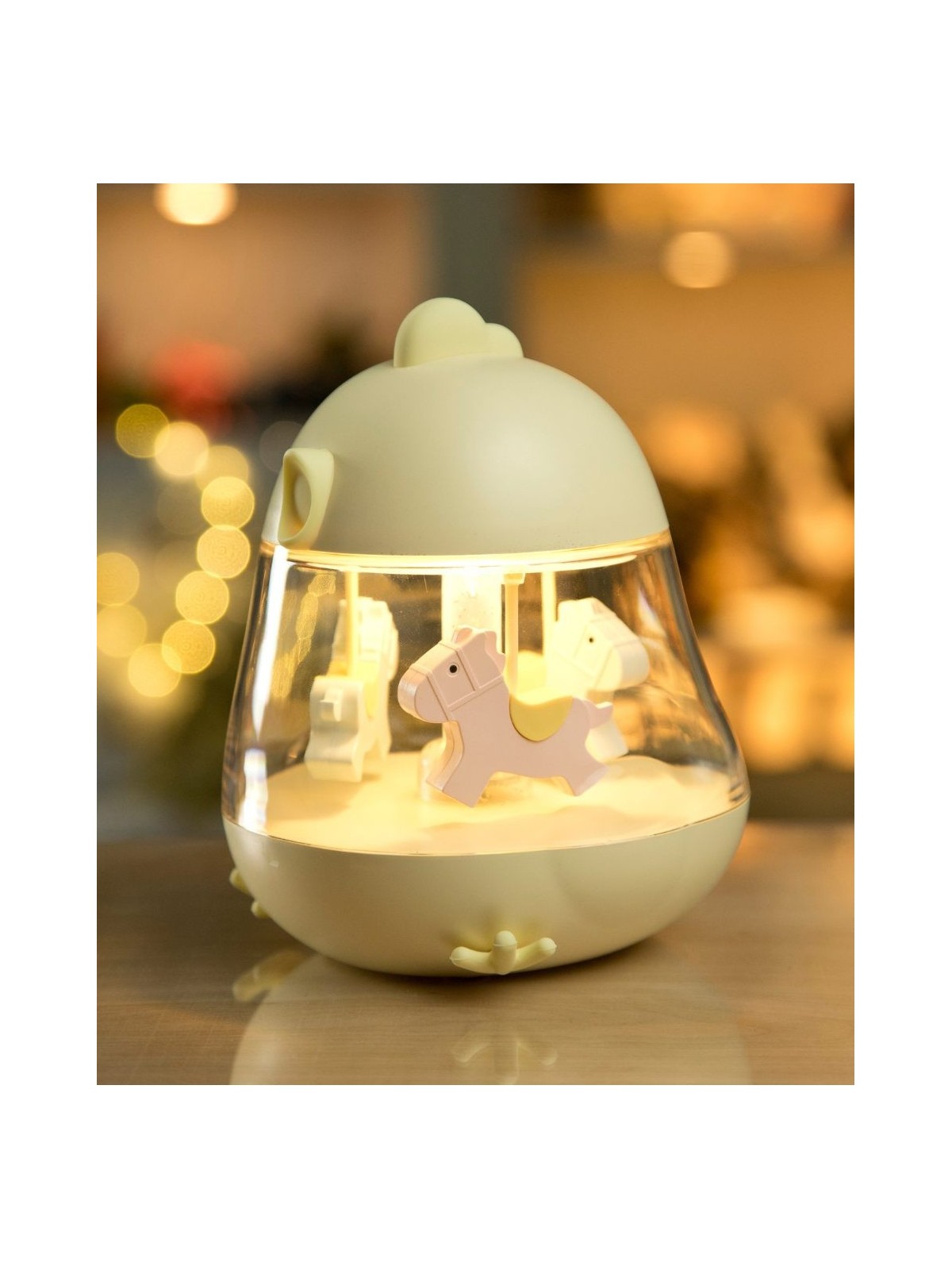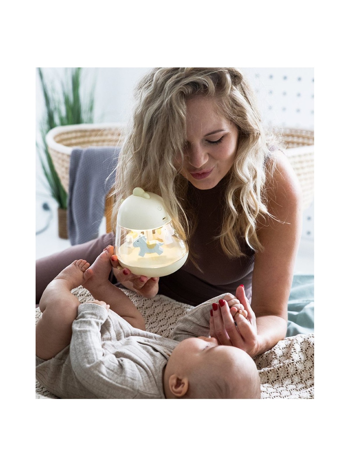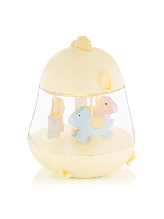 Lampka nocna Kurczaczek z karuzelą i pozytywką zapewnia kojące towarzystwo w dzień, jak i w nocy. Kręcące się koniki i delikatna melodia pozytywki uspokoją maluszka i wprowadzą w odprężający nastrój.