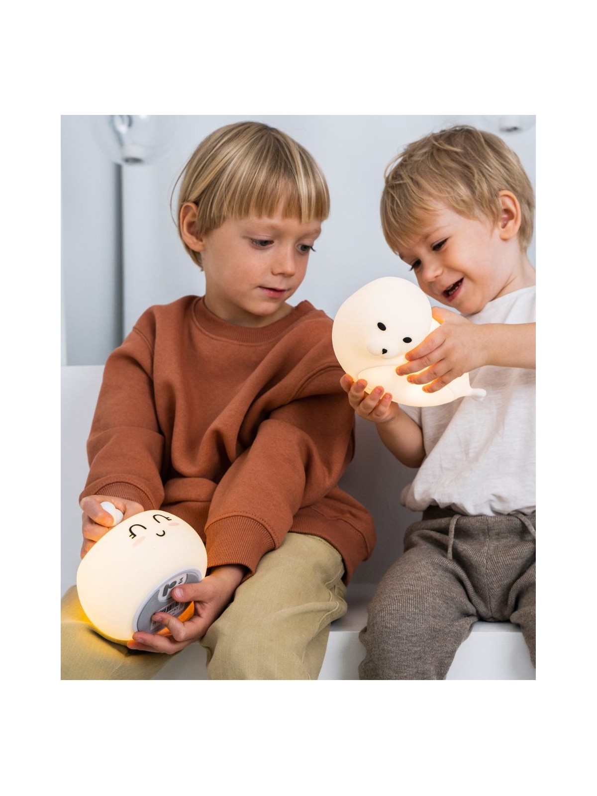 Lampka nocna Miś Mały rozświetla otoczenie ciepłym, przyjaznym światłem. Jej obecność sprawia, że dzieci czują się bezpiecznie w nocy. Rodzicom ułatwia ich doglądanie i pielęgnację.