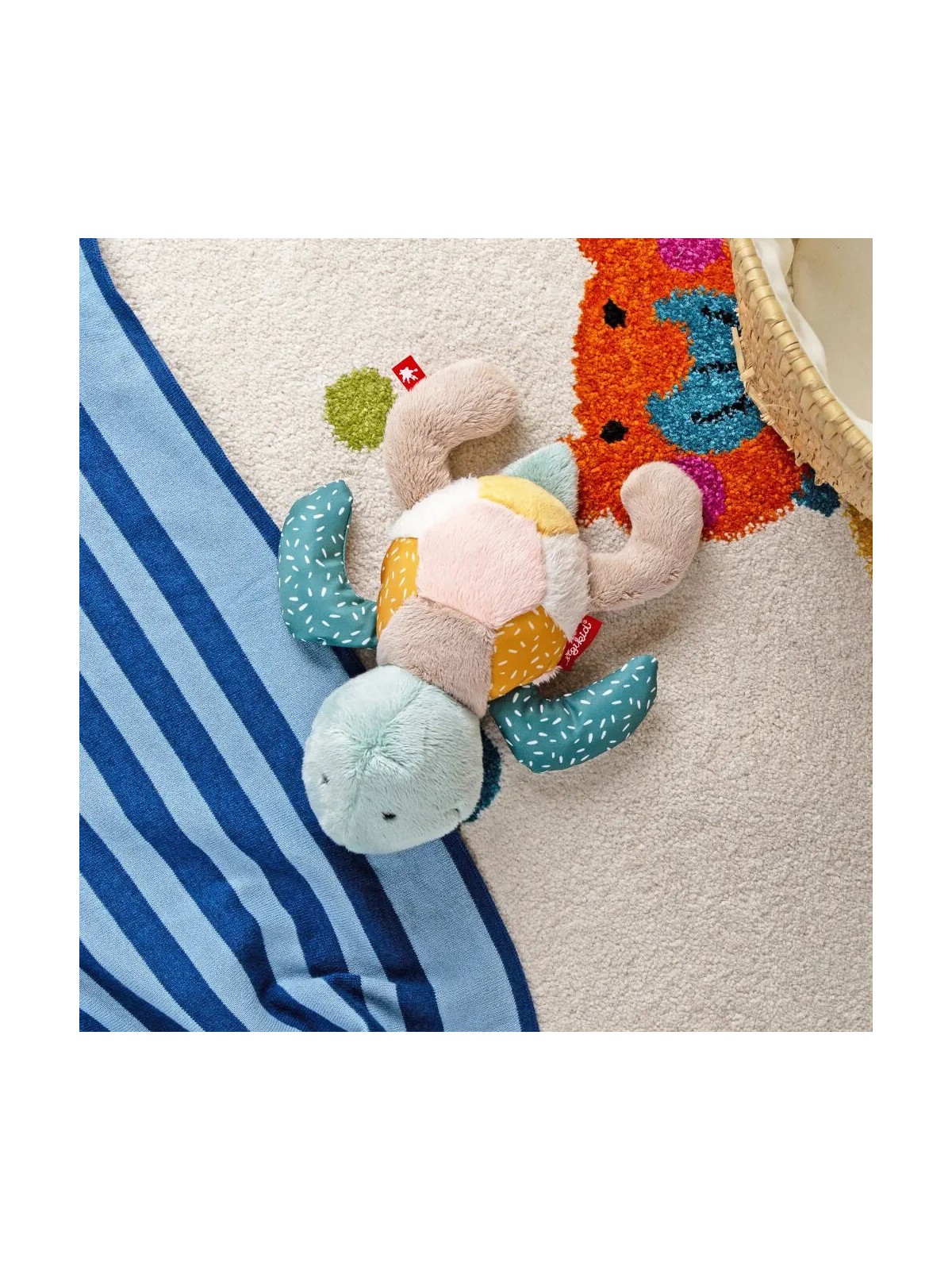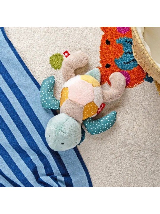 Pierwsza przytulanka patchworkowa Żółw zachęca do eksplorowania, angażuje zmysły maluszka i wzbudza jego ciekawość.