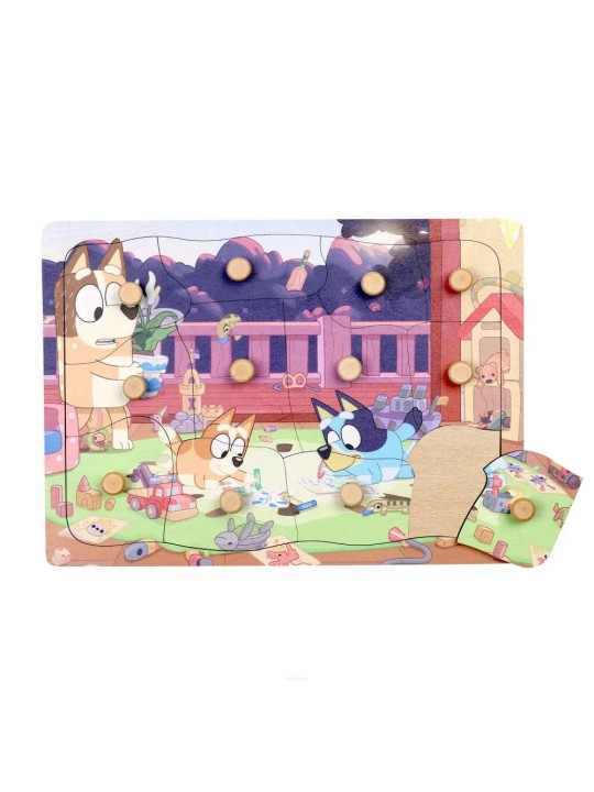Urocza układanka dla dzieci została zaprojektowana w Szwecji i starannie wykonana z drewna na podstawie oryginalnych ilustracji z kreskówki Bluey.